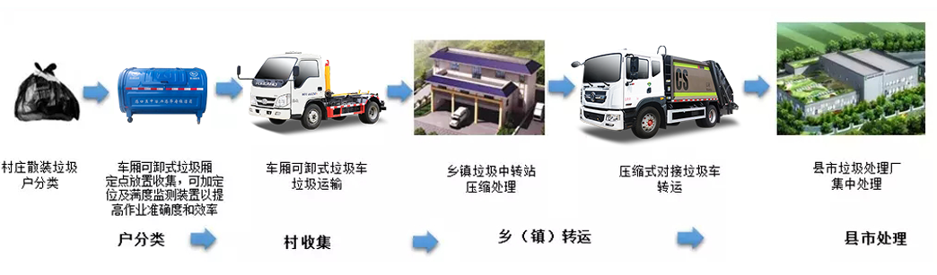 楚勝環衛針對農村環境治理開發了系列化產品:小型壓縮車、3噸側裝/后裝壓縮車、自裝卸垃圾車、移動壓縮中轉站、吸污吸糞車等。密閉、環保、高效的農村垃圾收集轉運體系,可依據人口分布、垃圾日產量及運輸距離等因素,因地制宜地提供不同收運方式。